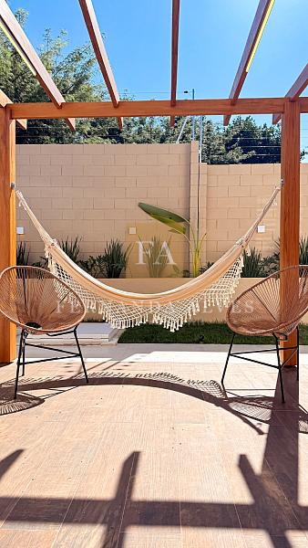 Com lote de 360 metros quadrados, a Casa proporciona  conforto interno para toda família e o espçao externo é um convite a desacelerar e relaxar na rede sob os pergolados.