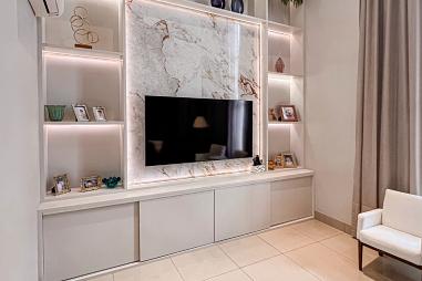 Pavimento central : Hall com pé direito duplo, escritório, sala de estar, sala de jantar, sala tv com lareira, cozinha, lavabo, quarto de serviço com banheiro anexo.