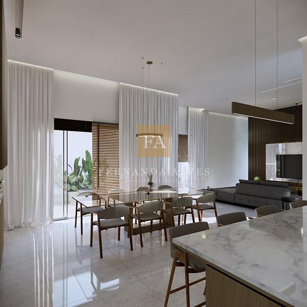 A Casa oferece 3 lindas suítes, home office, 4 vagas de garagem e será entregue completa em marcenaria.