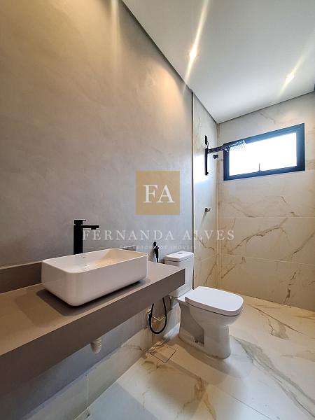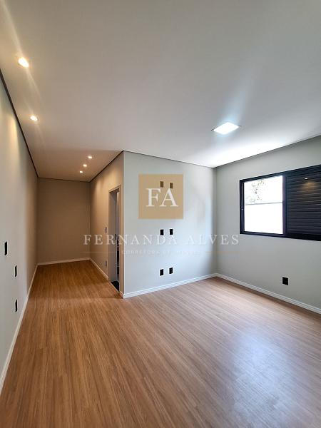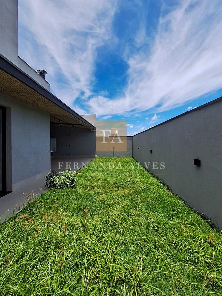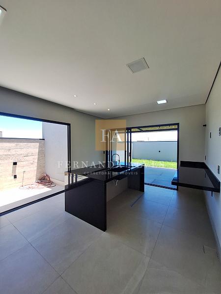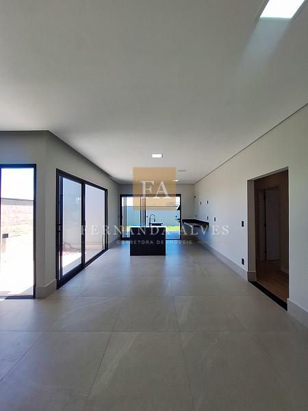 Casa à venda no Condomínio Solar das Esmeraldas, em Nova Odessa, com projeto contemporâneo de linhas retas e elegantes, que valoriza a integração dos ambientes e o contato com a natureza. O living é integrado à sala de jantar e à cozinha, criando um espaço amplo e funcional, com destaque para a área de luz, cujas paredes são revestidas com pedras naturais, conferindo sofisticação e aconchego ao projeto.