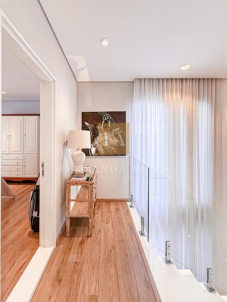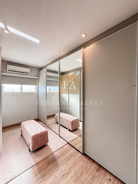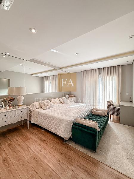 O Piso superior conta com três amplas suítes, todas com varandas e armários planejados. Suíte principal com closet e banheiro casal com hidro.