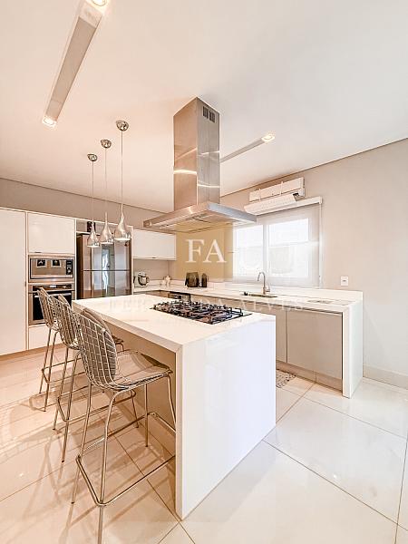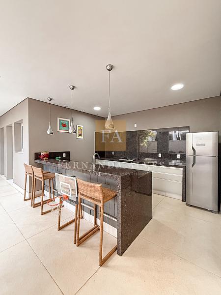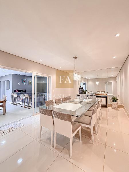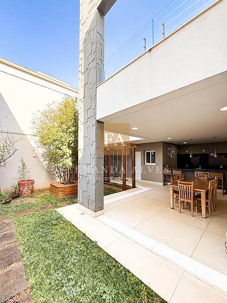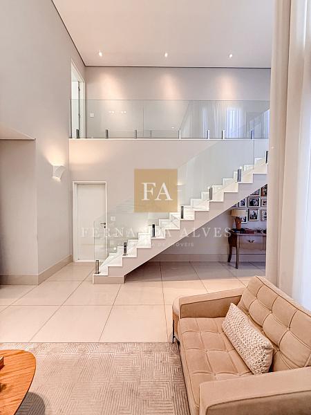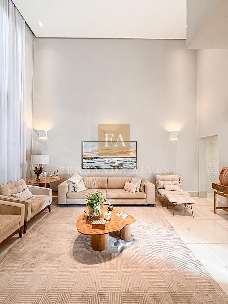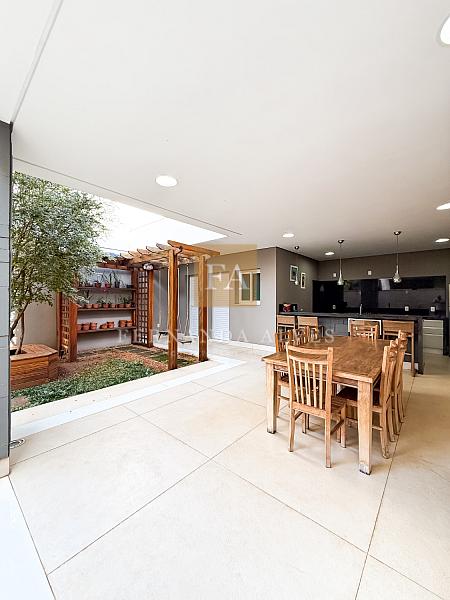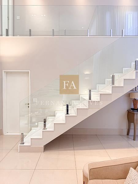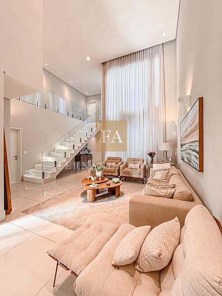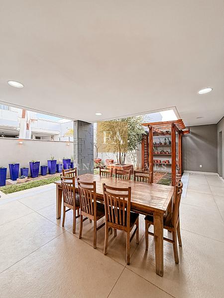 Essa casa oferece muito espaço para toda a família e será vendida mobiliada. O Piso térreo conta com uma ampla Sala de visitas/TV com pé direito duplo e com vista para o mezanino. Neste ambiente também há lavabo e escritório privativo. A Sala de jantar tem um ar mais sofisticado e intimista, fica ao lado do espaço gourmet e da cozinha interna. Falando na cozinha, ela está separada dos ambientes sociais, isolada para quem gosta de um ambiente menos exposto e ao lado da área de serviço. Espaço gourmet amplo, com extensa bancada e churraqueira, banheiro completo espaço verde.
