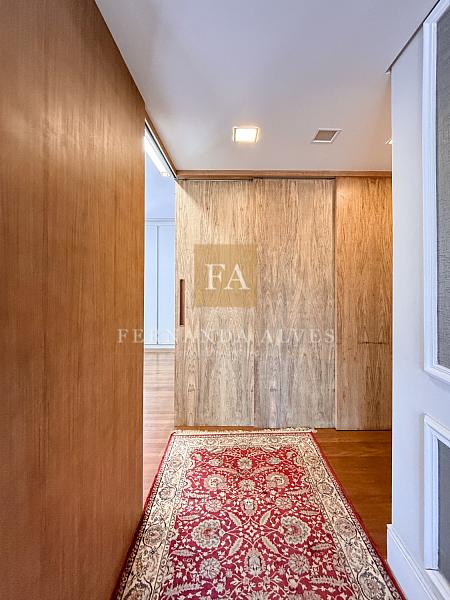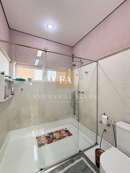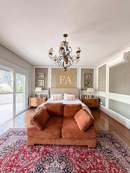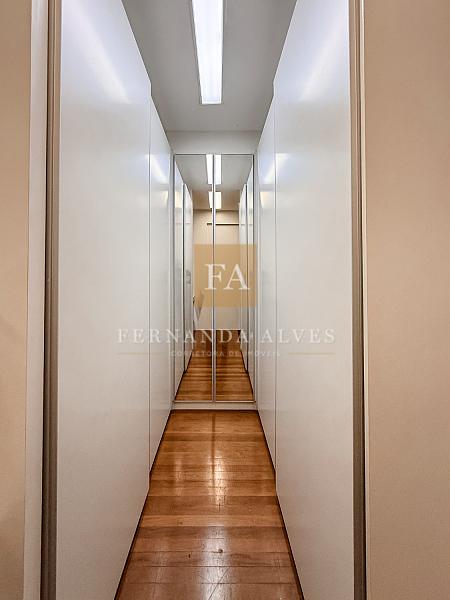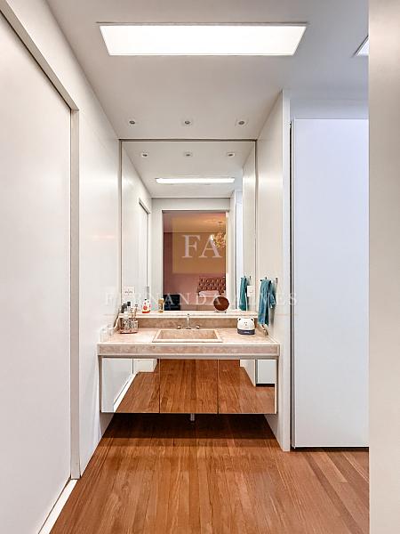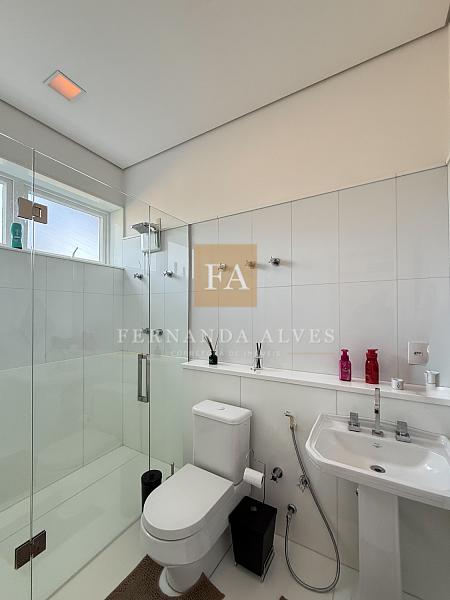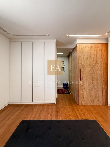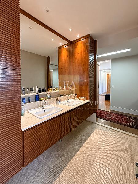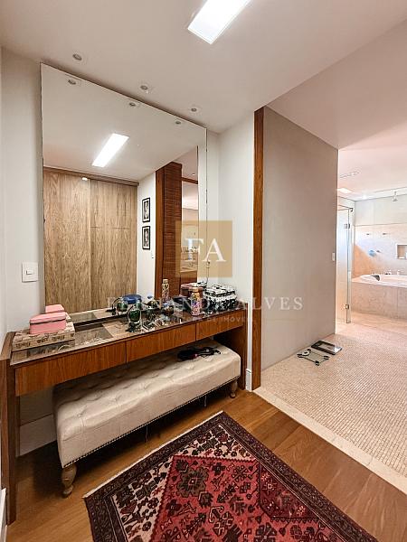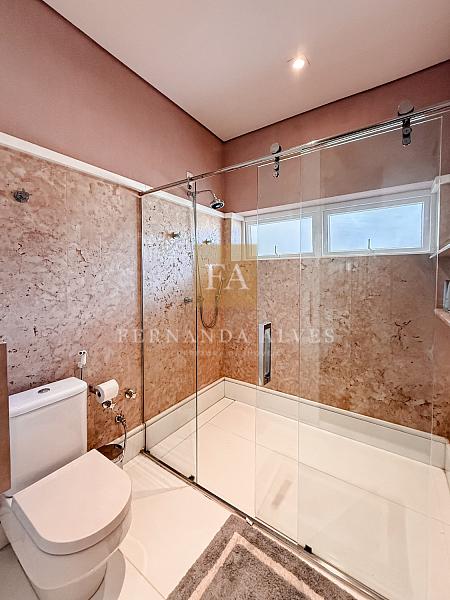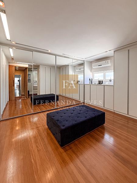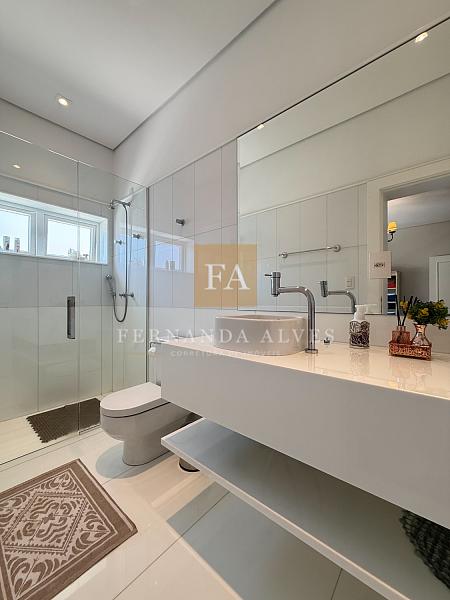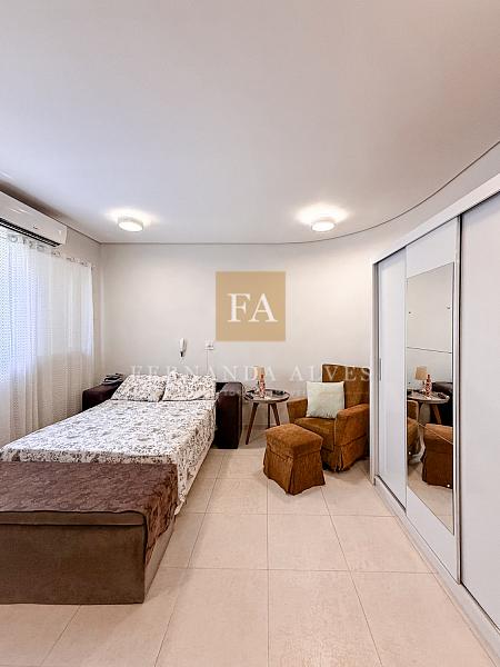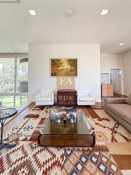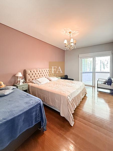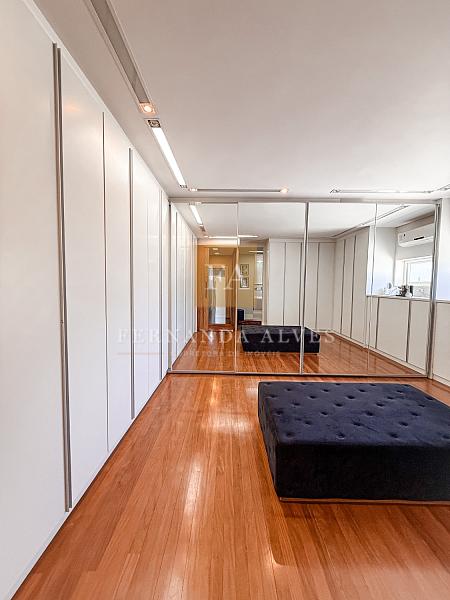 Piso superior: escadas em madeira e mármore, sala íntima com vista do mezanino de 7 metros, sala de TV, 4 suítes sendo a principal com um super closet e todas com varandas e vista do jardim.