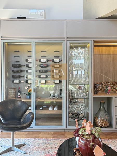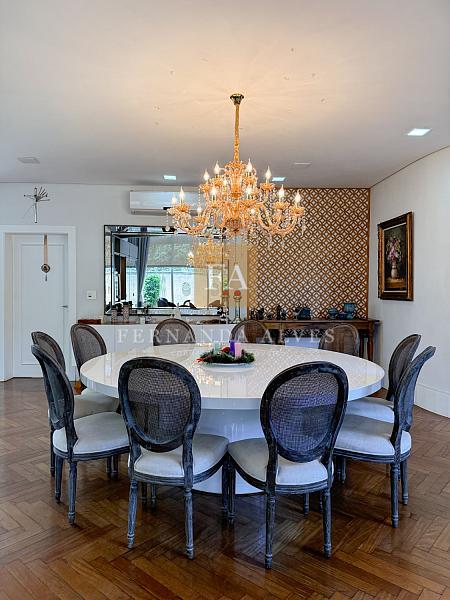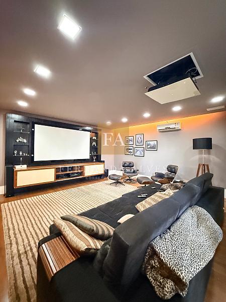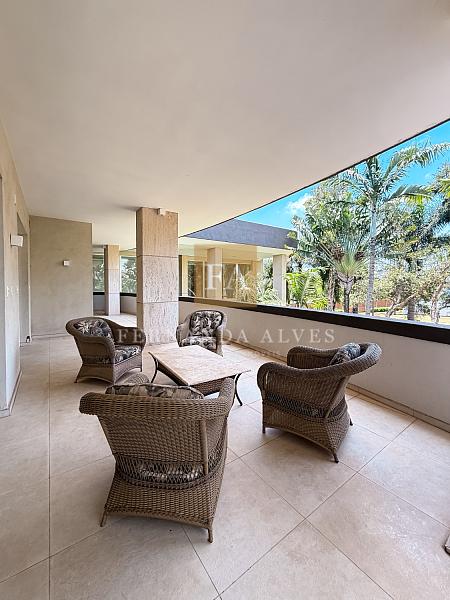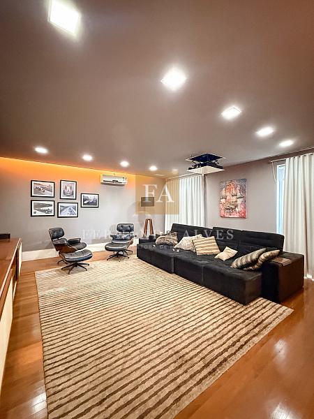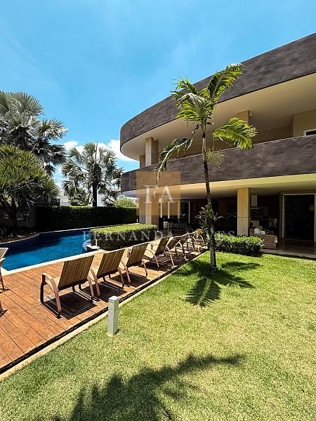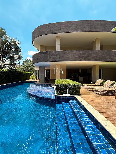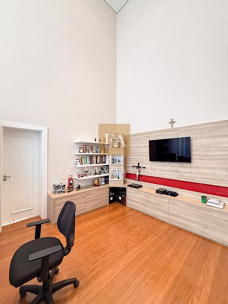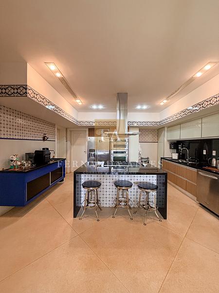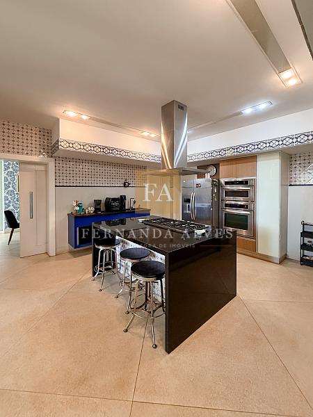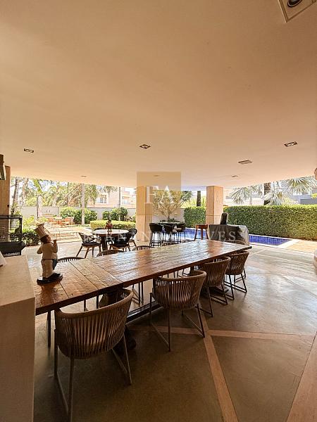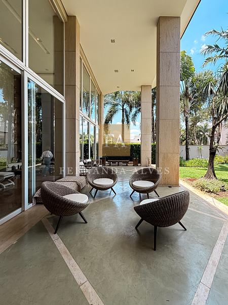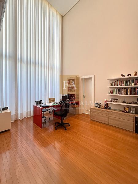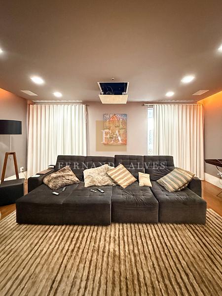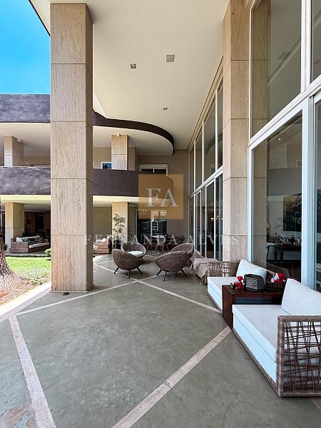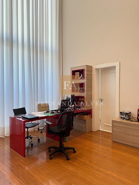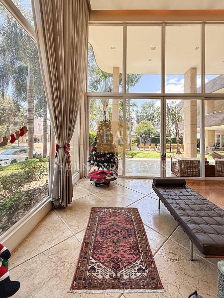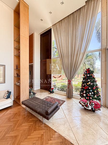 O térreo oferece: Hall de entrada, lavabo, living com pé direito duplo e três ambientes com salas de visitas, espaço jantar e espaço vinho. Sala de cinema, amplo escritório/biblioteca, Cozinha com depensa de alimentos, lavanderia e sala de almoço.
