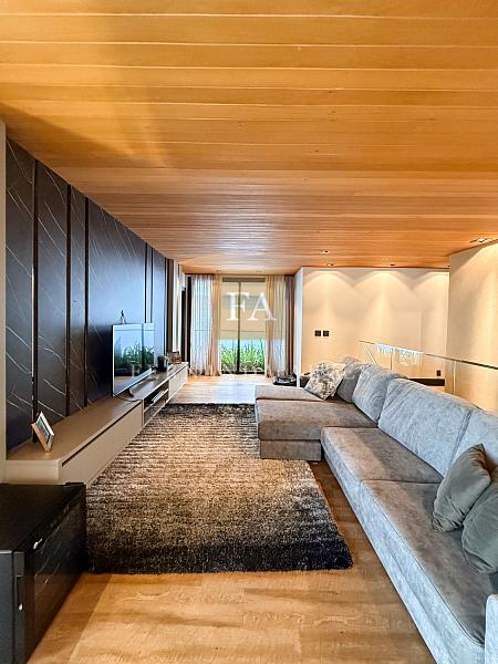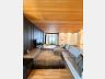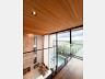 Living com pé direito duplo e vista do lindo mezanino, com teto em madeira, portas em vidro que acompanham todo pé direito, trazendo tanta ventilação e luz natural para essa casa!