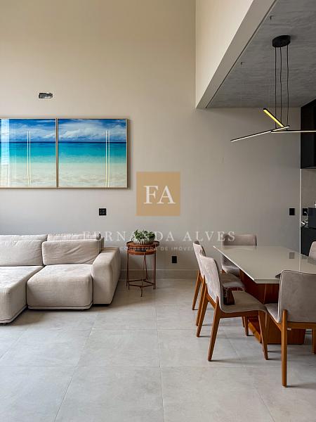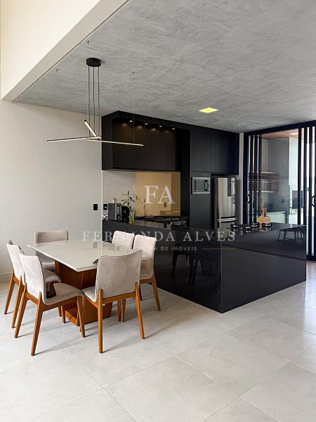 Amplo Living para até três ambientes com sala de TV, jantar e se quiser, você pode decorar a sua sala de visitas. Projeto moderno, Ambiente totalmente integrado a cozinha interna e espaço gourmet logo ao lado. Os espaço se conectam também pelas portas altas que se estendem por todo pé direito, criando além de conexão, uma sensação de liberdade dentro de casa.