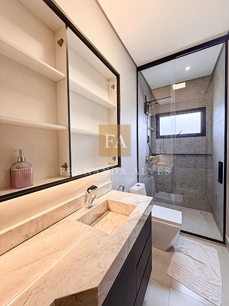 A área íntima oferece três ótimas suítes e a principal com persianas automatizadas e vista para a piscina. A casa será entregue com marenaria completa, já possui sistema de aquecimento solar e pressurizador.