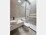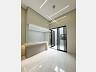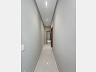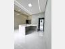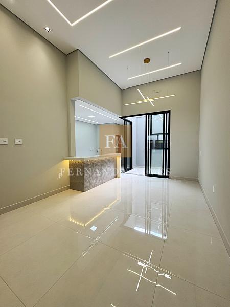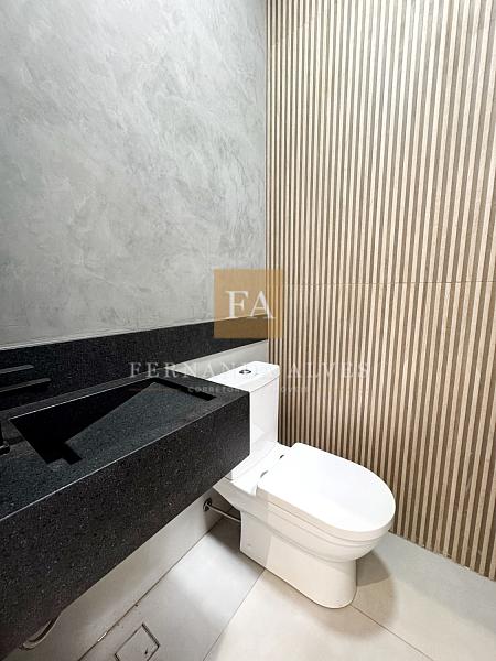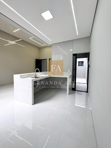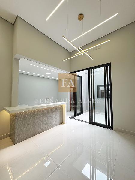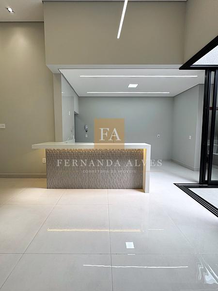Lixeira embutida, balcão com iluminação em led, sala jantar com lustre instalado, Lavanderia.