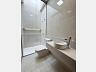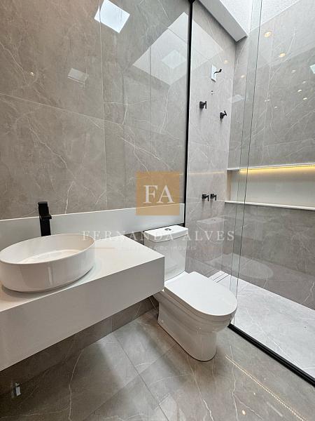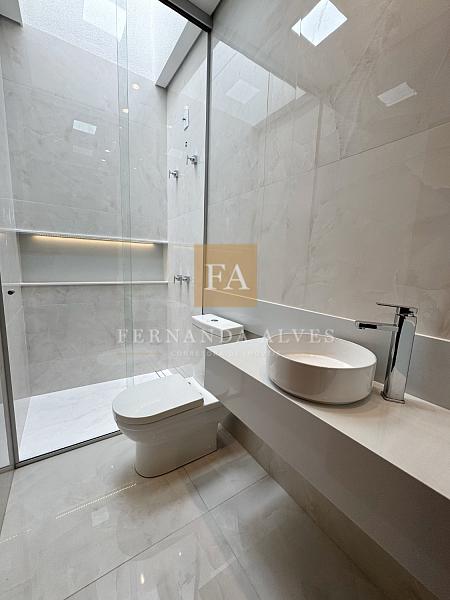 Banheiros modernos, nicho com iluminação em led box diferenciado, pedras bancadas em branco prime cubas de sobrepor.