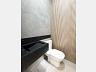 Espaço gourmet com churrasqueira revestida em porcelanato, acabamento interno em inox e um lindo lavabo.