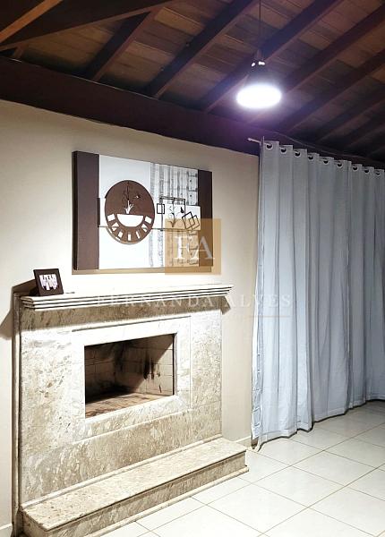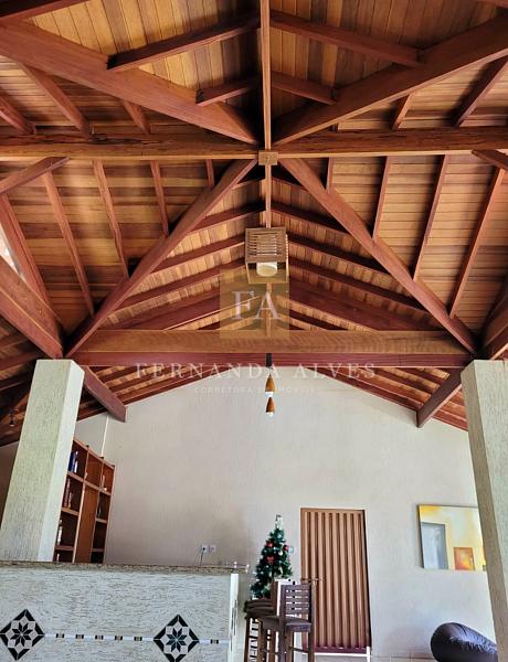 Casa “Cabana americana”: com aproximadamente 300 m de construção, de alvenaria e madeira com 2 dormitórios sendo 2 banheiros, sala de estar/jantar com aproximadamente 100m e com bar e móvel planejado, lareira e cozinha de apoio; casa possui cozinha com copa, churrasqueira, forno de pizza e fogão a lenha; despensa e lavanderia. A cozinha possui duas pias, sendo uma numa península e espaço suficiente para cozinhar. Espaço para armazenamento na cozinha e lavanderia. Jardim no fundo da casa com canil. Pintura interna e externa feita recentemente!