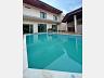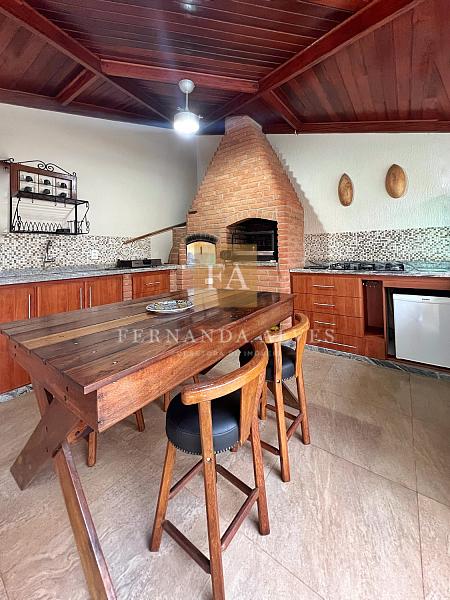 Na área externa, espaço gourmet com piscina, forno de pizza e frigobar.