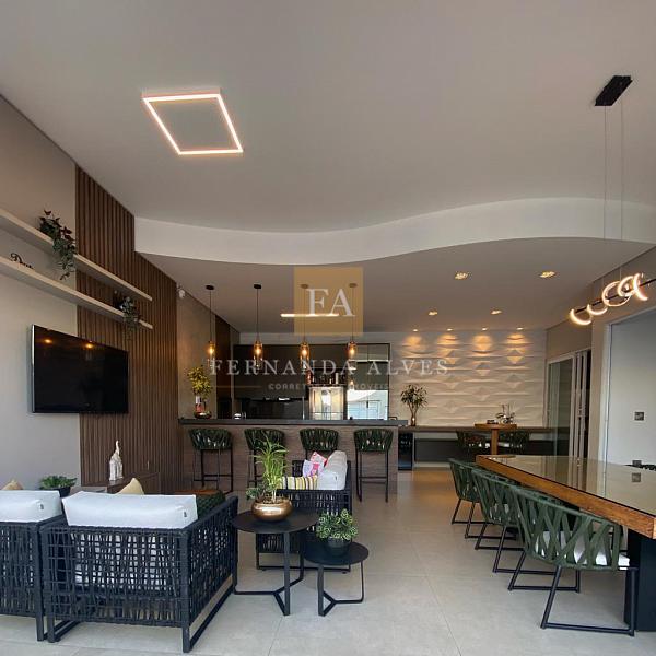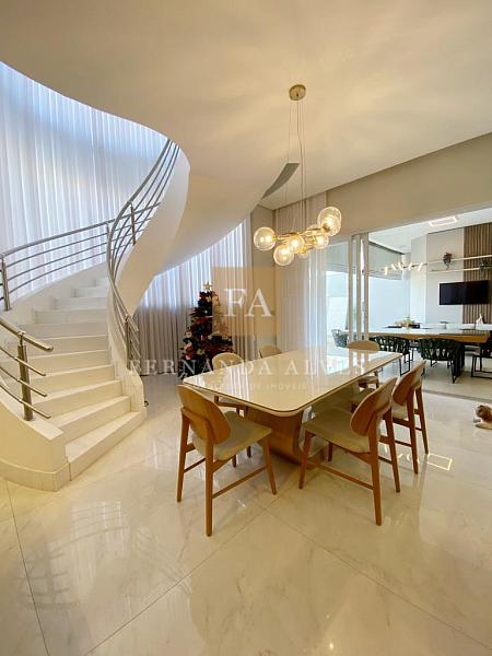 Possui duas entradas a entrada social com acesso ao living, sala de Tv, sala de jantar, lavabo, cozinha interna com vista para área gourmet.
