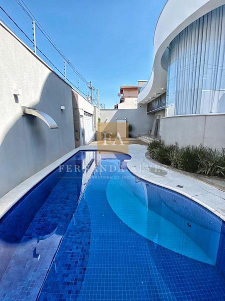 Entrada lateral do imóvel com acesso a piscina que é aquecida e área gourmet com churrasqueira a carvão, sala de Tv, banheiro externo, área de serviço, despensa, deposito.