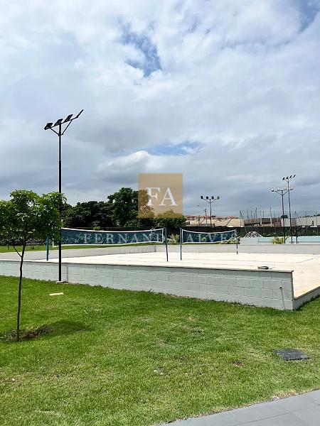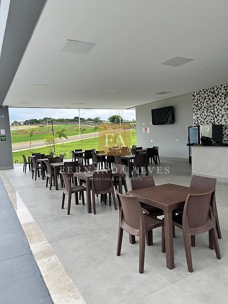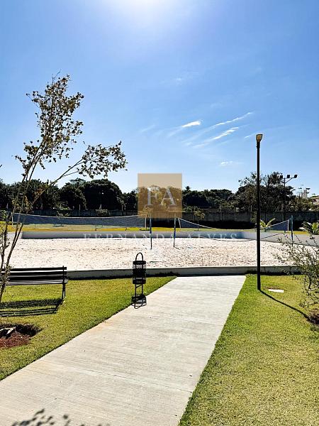 O condomínio será entregue com, quadra poliesportiva, salão de festas, quiosque externo, pista de caminhada em volta do lago e playground.