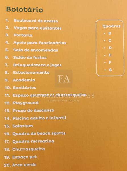 Condomínio com data próxima para liberação da construção, oferece completa infraestrutura: Academia, quiosques externos com churrasqueiras, playground, praça do descanso, piscinas adulto e infantil, solarium, quadra de beach sports, quadra recreativa e churrasqueira.